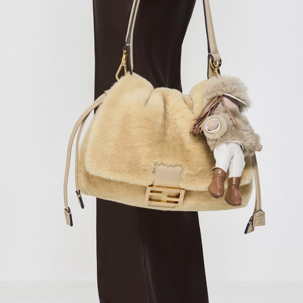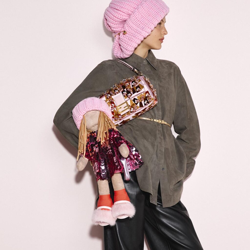 The charm-mania begins with the FENDI BFF Maxi and Mini Charms. First seen on the Fall/Winter 2025-26 anniversary runway, these miniature personalities are the must-have collector’s items that will add a fun touch to every bag. The Maxi Charms, part of a limited series, are crafted in upcycled fabrics and fur to combine the Maison’s utmost craftsmanship with playfulness and creative circularity. Embracing the FENDI spirit of chosen bonds, altogether they create an extended family of accessories in two different sizes, designedto be mixed and matched for ultimate enjoyment and to become cherished “Best Friends Forever”.Each with a unique name and character, every charm boasts its own distinct style and personality that resonates with individual identity and self-expression. Luxurious materials and intricate details such as mini Baguette bags and iconic FENDI dressing bring these delightful characters to life, making each charm a true work of art. Among them, the charm Silvia is dressed in a mini replica of the equestrian outfit designed by Karl Lagerfeld and worn by a 7-year-old Silvia Venturini Fendi in 1967 in a famous picture – the same one her grandchildren wore to open the doors to the FENDI centenary show.