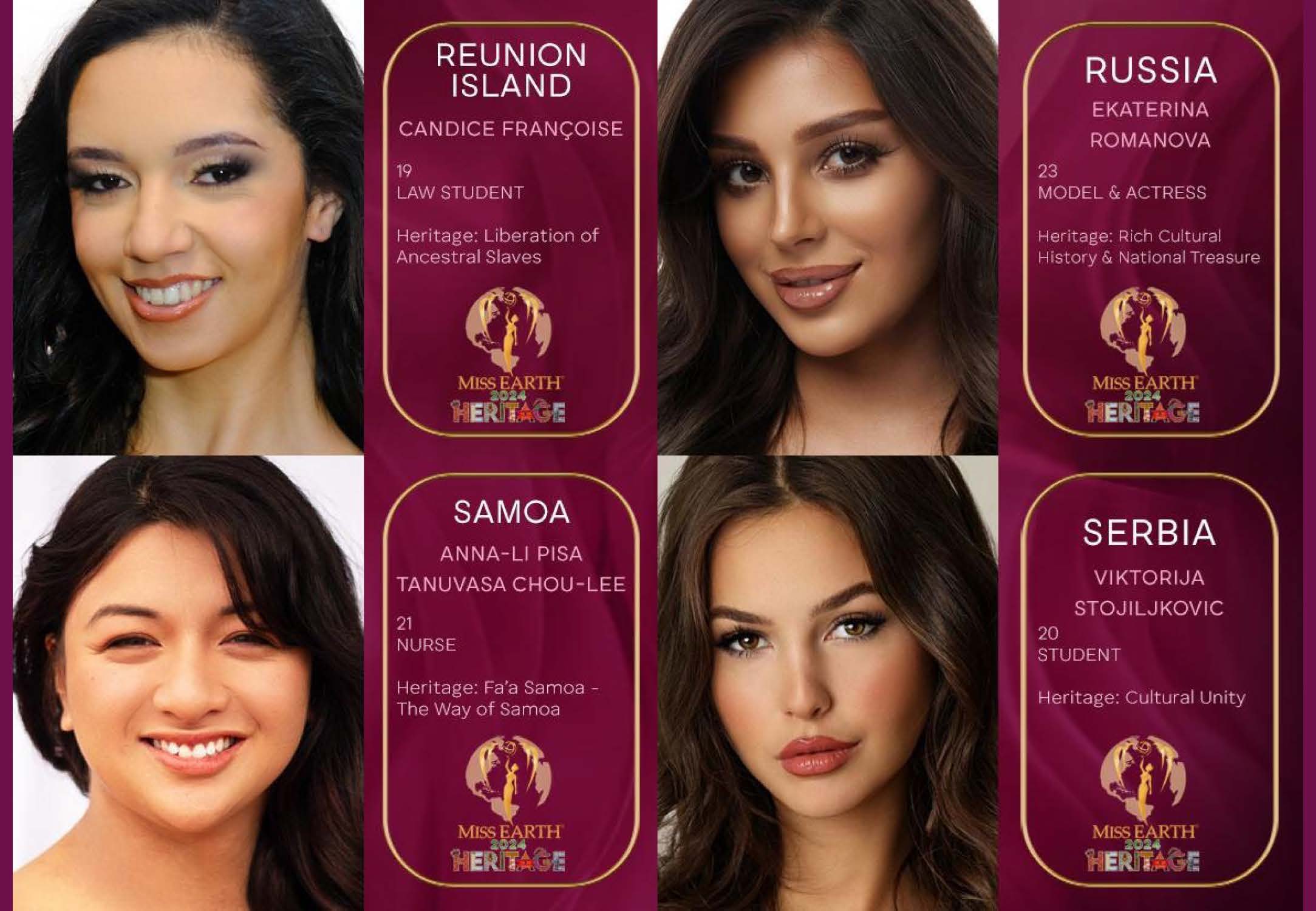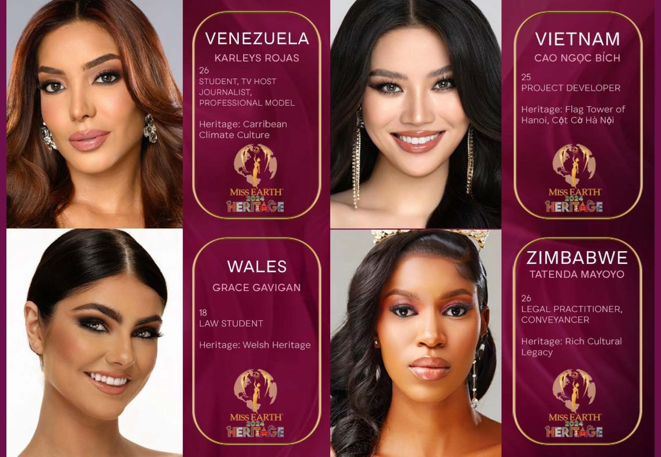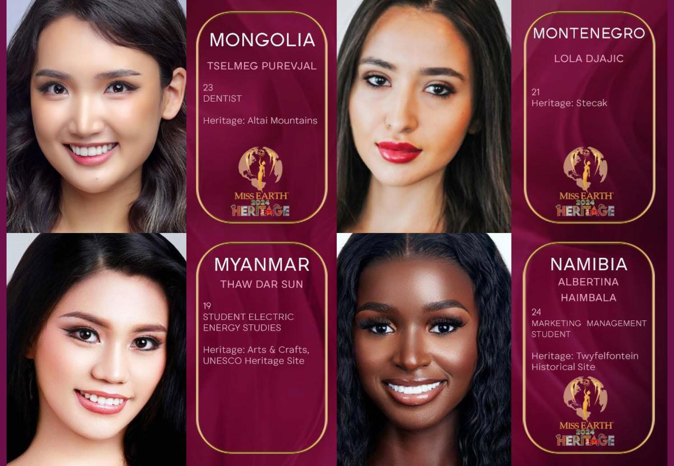 Introducing the distinguished candidates for the MISS EARTH 2024 Pageant, under the elegant theme of ‘WORLD HERITAGE X ENVIRONMENT’. This year, we are honored to welcome 76 exceptional contestants from across the globe, each embodying their nation’s dedication to environmental sustainability and cultural heritage. Join us for the grand coronation night on November 9, 2024, at the luxurious Okada.
