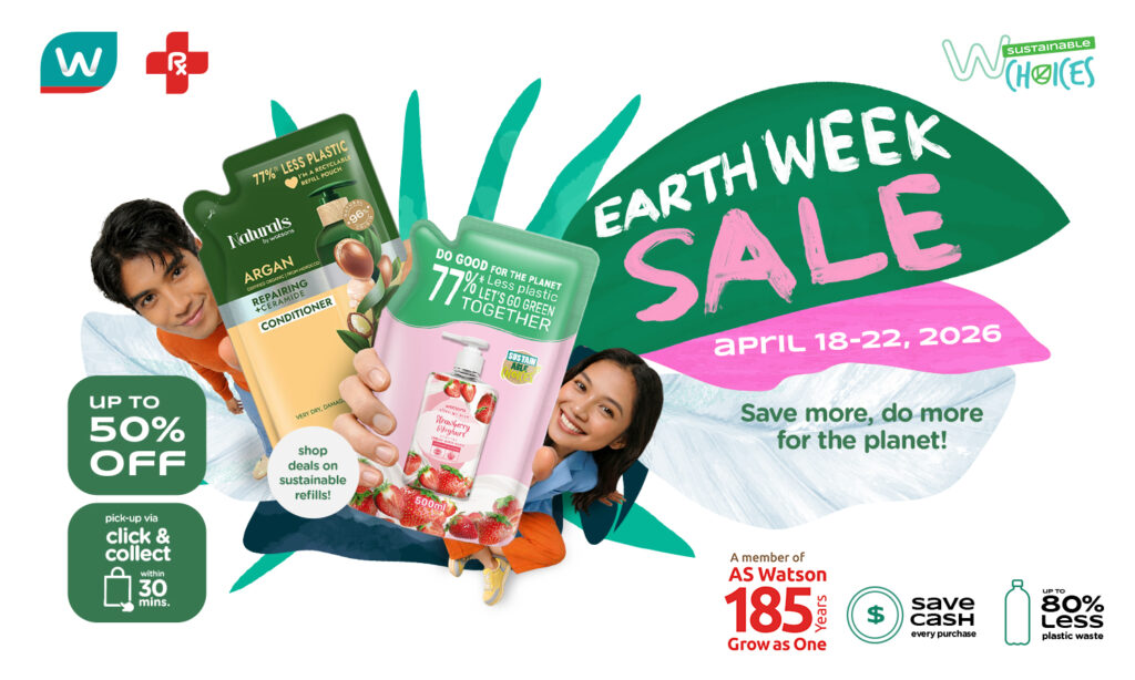 This Earth Week, make every purchase more than just a transaction but a step toward a sustainable future. Visit your nearest Watsons store or shop online via the Watsons app from April 18–22 to enjoy exclusive deals. Sign up as a Watsons Club member to unlock special rewards and perks because every small, sustainable choice deserves to be rewarded.